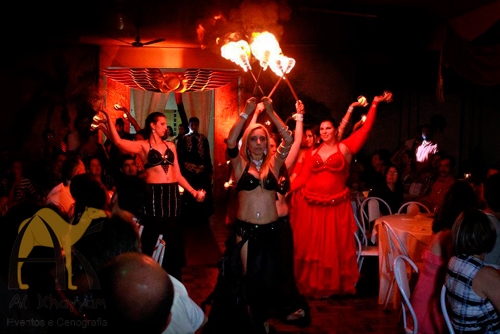 Música árabe ao vivo e shows com as bailarinas de dança do ventre, tribal, fusões e folclóricas.